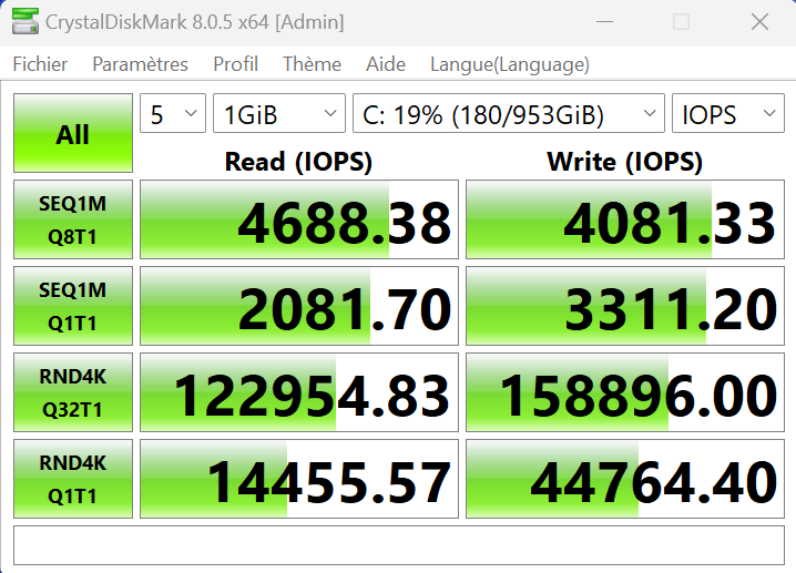 Bien que cette marque ne parlera pas à tout le monde, dans les faits, les performances de ce disque SSD NVMe sont très bonnes ! Un copier-coller de gros fichiers en local (de disque à disque, sur le même volume), est effectué avec une vitesse moyenne de 1.47 Go/s ! En 1 minute et 13 secondes, j'ai pu dupliquer une bibliothèque d'images ISO de 101 Go !