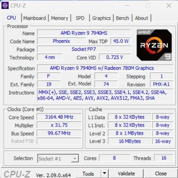 - Processeur : AMD Ryzen 9 7940HS (8 Cœurs, 16 Threads, 16 Mo de cache, jusqu'à 5,20 GHz)