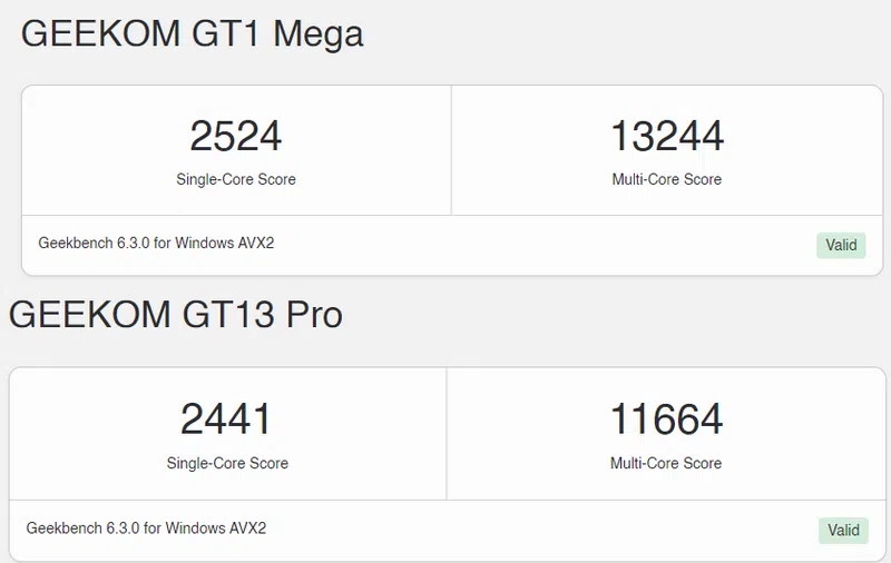 - Geekbench - CPU - GEEKOM GT1 Mega