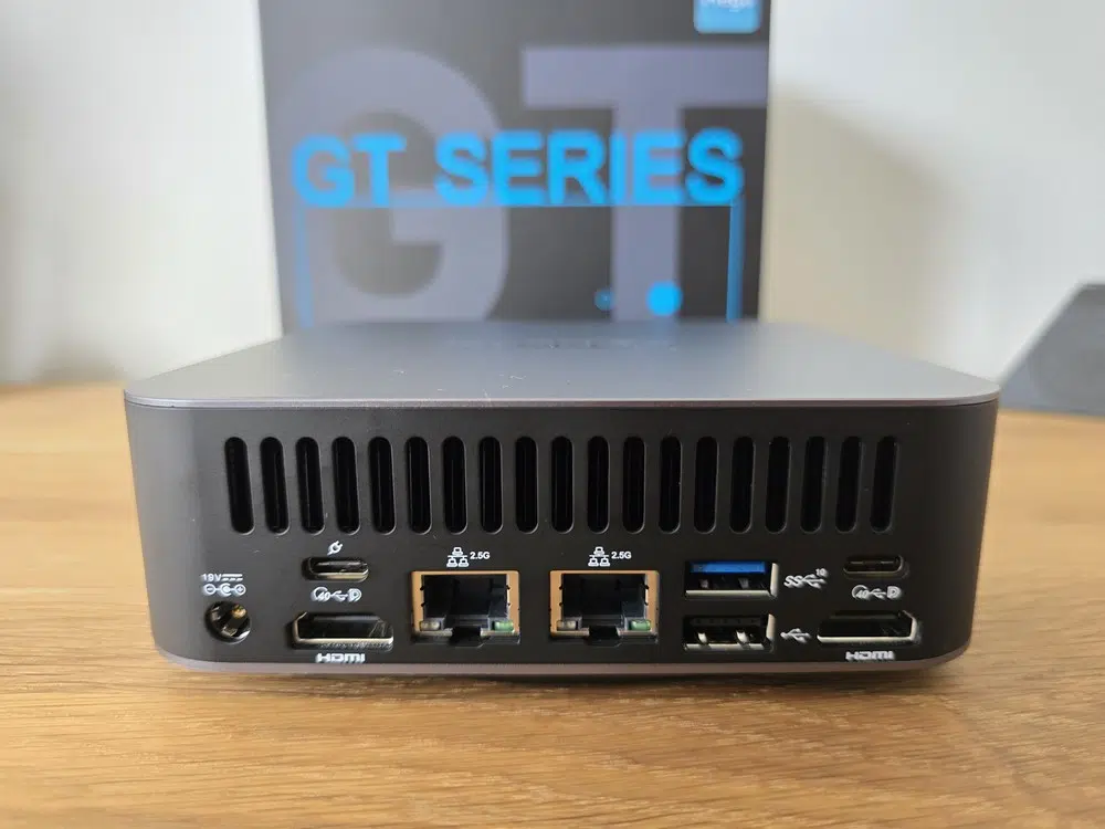 Cette configuration est vraiment très alléchante sur le papier... Puisque nous avons un Mini PC avec une configuration « dernier cri » : Intel Core Ultra avec un NPU, DDR5, WiFi 7, USB4, Bluetooth 5.4, ou encore 2 ports Ethernet 2.5 GbE, sont autant de composants qui rendent ce modèle différent de tous les autres proposés par Geekom jusqu'ici.
