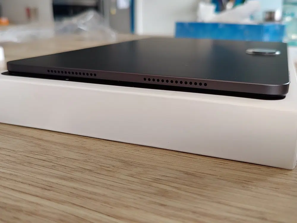 Je me dois d'insister sur la présence de 8 haut-parleurs répartis à droite, à gauche et sur la tranche inférieure de la tablette. Il est clair que cela permet d'avoir une bonne immersion lorsque l'on regarde une vidéo, ou pour avoir un son sympa lorsque l'on écoute de la musique. Pour les micros, sachez qu'il y en a 2 sur la tranche supérieure de la tablette, à proximité des boutons.