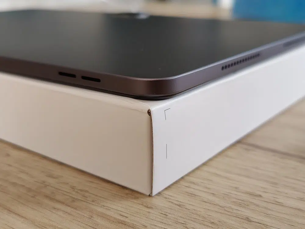 Nous avons fait le tour de la tablette et nous pouvons également noter l'absence d'un lecteur biométrique. Cependant, le déverrouillage de la tablette pourra être effectué à l'aide de la reconnaissance faciale. Enfin, bien qu'elle soit grande, cette tablette n'est pas lourde : 555 grammes, ce qui permet de pouvoir la transporter et la maintenir facilement.