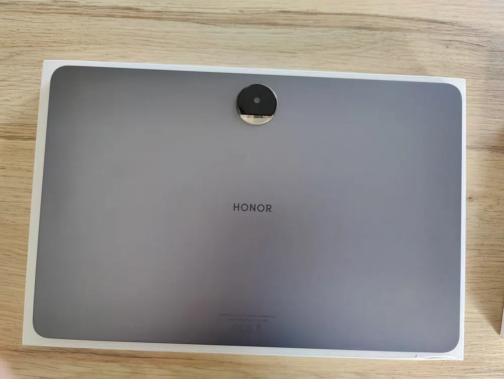 La tablette bénéficie d'un châssis intégralement en métal, avec des angles arrondis. Il ajoute de l'élégance à l'appareil et présente l'avantage d'être très peu sensible aux traces de doigts. À l'arrière, nous retrouvons, au centre, le module photo principal de forme circulaire. Il est décrit de la façon suivante par Honor : "Le design de l'appareil photo central arrière tire son inspiration de la lune montante sur la mer endormie et scintillante." - Même s'il n'est pas discret et assez imposant, il ne contient qu'un seul capteur.