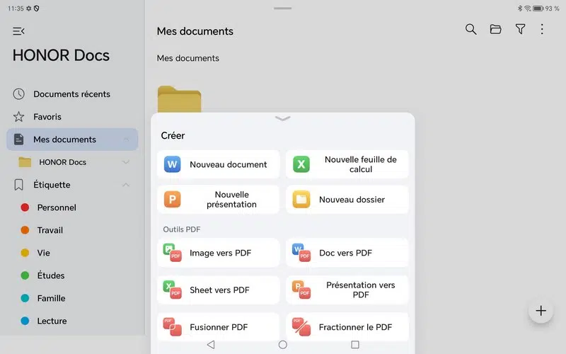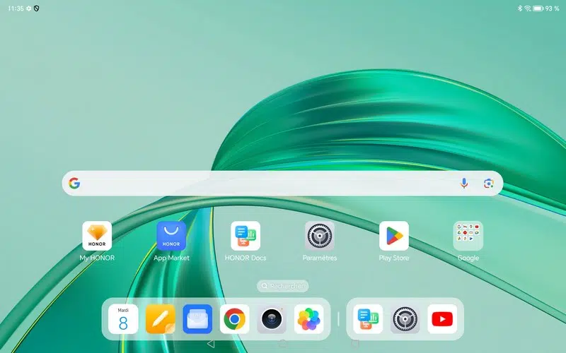 La tablette est livrée avec un ensemble d'applications préinstallées, et malheureusement, elles sont assez nombreuses. Voici la liste : Netflix, Facebook, Booking.com, TikTok et WPS Office. Sans compter les applications de chez Google ainsi que celles d'HONOR dont l'éditeur de documents HONOR Docs et le magasin d'applications App Market. Sur 128 Go de stockage, il y a 101,55 Go exploitables par l'utilisateur.