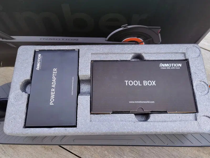 Une première boite en carton contient le chargeur du Climber, tandis qu'une seconde boite contient le nécessaire pour l'assemblage, notamment deux tournevis. À cela s'ajoutent deux chambres à air et les embouts adaptés pour les gonfler. Une bonne nouvelle, car en cas de crevaison, nous avons déjà le matériel de rechange à notre disposition.