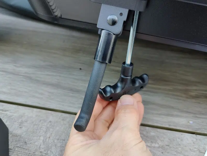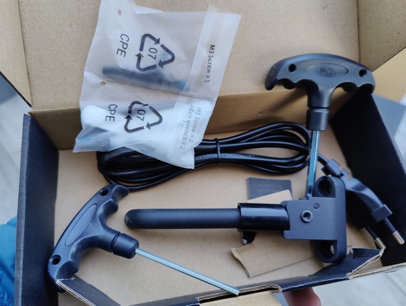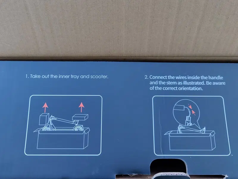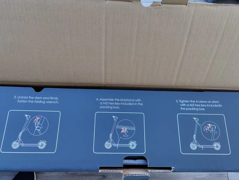L'assemblage s'effectue en 10 minutes puisque la trottinette est quasiment assemblée dans le carton. Il n'y a que la béquille à fixer, l'écran à brancher via le câble présent dans le cadre, et 4 vis à installer pour fixer la partie avec le guidon au reste du cadre.