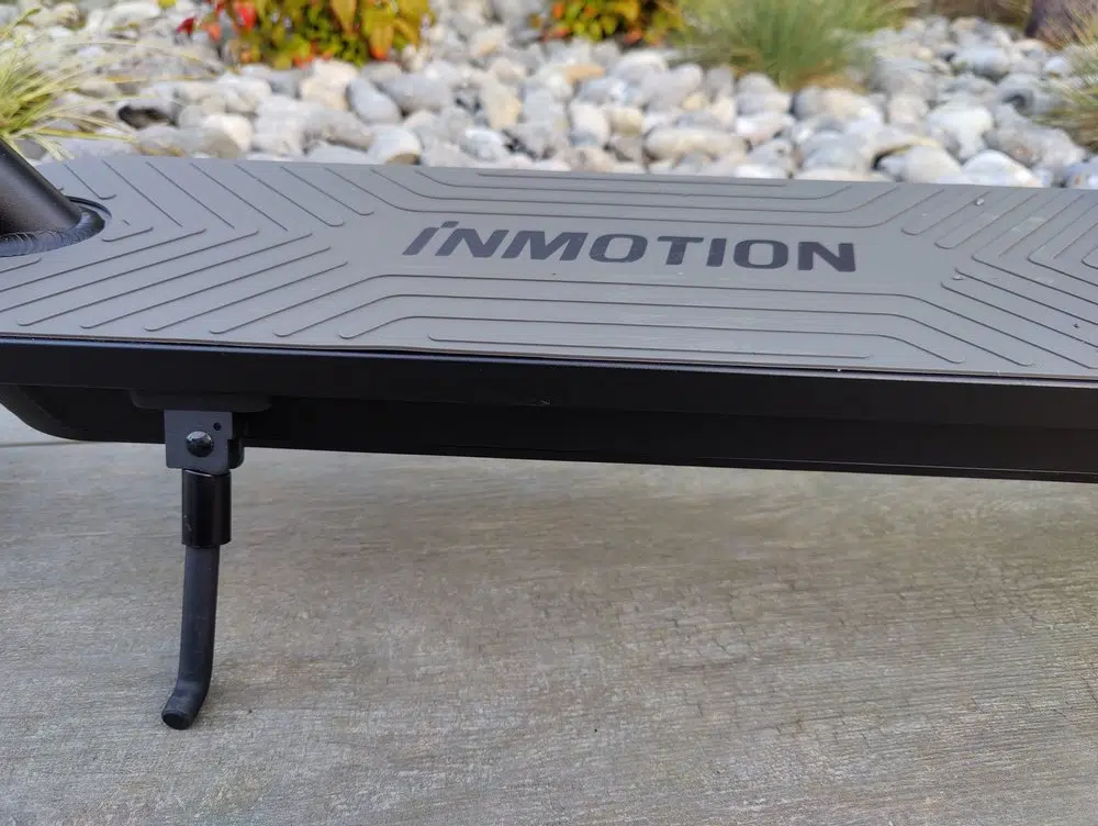 La trottinette est équipée de deux pneus 10 pouces, de très bonne qualité. Les références choisies ont l'air résistantes, ce qui devrait assurer une bonne tenue dans le temps. D'ailleurs, InMotion évoque l'utilisation de chambres à air extraépaisses. Certains modèles concurrents utilisent des pneus dits tubeless, constitué d'un gel auto-obturant pour lutter contre les crevaisons.