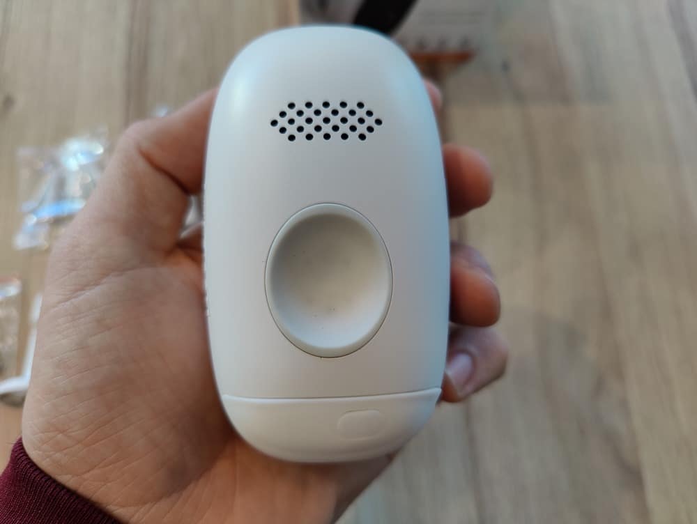 À l'arrière, c'est intéressant, car nous avons le haut-parleur de la caméra que vous pouvez voir facilement sur les photos ci-dessous. Au centre, c'est la partie aimantée qui sert à positionner le support de fixation (voir ci-dessous), et la partie basse de la caméra donne accès à différents éléments.