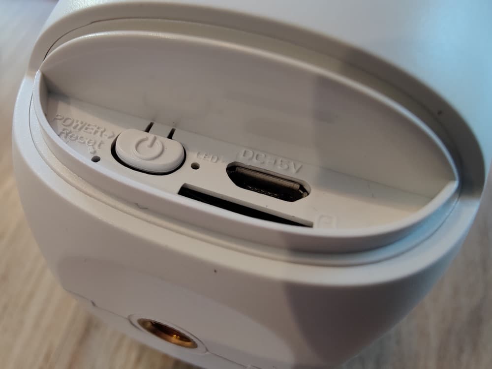 Pour être plus précis, après avoir retiré le cache de protection, on peut accéder au bouton on/off de la caméra, au bouton reset, à la prise microUSB qui sert à recharger la caméra et à l'emplacement pour la carte microSD (non fournie). Le cache de protection s'enlève complètement, c'est un peu dommage et en plus il n'est pas très pratique à positionner, mais il faudra y prêter une attention particulière, car il sert à protéger la connectique contre les intempéries.