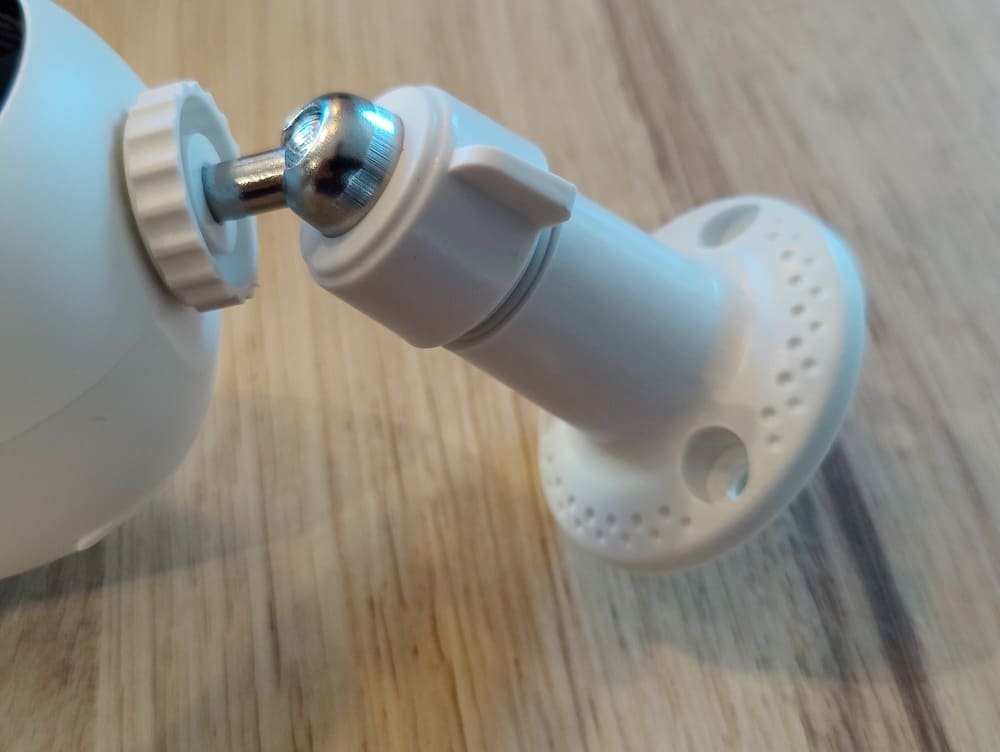 Il y a deux types de support de fixation : un support de fixation avec une base magnétique qui va maintenir la caméra grâce à un aimant (et ce support peut se fixer grâce au ruban adhésif double face fourni), et un second support de fixation va venir se visser sur la caméra. Si l'installation est effectuée en extérieur, je pense qu'il vaut mieux privilégier le support à visser notamment si la caméra est exposée au vent. Si elle est à l'abri, sous un carport par exemple, on peut miser sur le support magnétique. D'ailleurs, la caméra supporte une plage de température assez large, mais dont il faut tenir compte : de -10°C à +50°C.