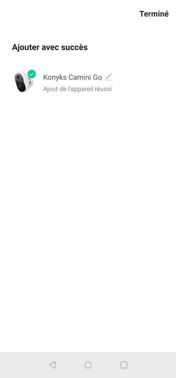 La mise en route s'effectue à partir de l'application Konyks, disponible gratuitement sur Android et iOS. L'idée étant d'associer la caméra Camini Go à son compte Konyks, aux côtés des autres appareils de la marque si vous en avez. L'initialisation s'effectue rapidement et le processus est facile à suivre. Après avoir démarré la caméra, il faut ajouter un nouvel appareil dans l'application. À ce moment-là, un code QR s'affiche sur le smartphone et il faut le scanner avec la caméra, en positionnant le smartphone à environ 20 cm. Grâce à cette opération, la caméra va récupérer des informations comme la connexion Wi-Fi à utiliser. Ensuite, il ne restera plus qu'à donner un petit nom à la caméra et le tour est joué !