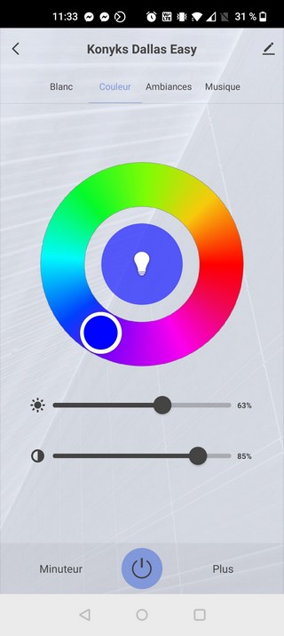 Sur le même principe, l'onglet "Couleur" permet de choisir la couleur que vous voulez ! En plus de l'intensité, il est possible de gérer le contraste de quoi vous permettre de faire votre choix parmi les 16 millions de couleurs.