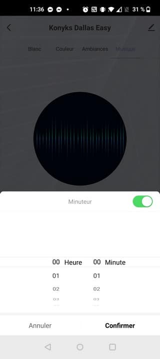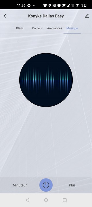 Enfin, l'onglet "Musique" devrait vous plaire pour animer vos soirées ! En effet, le bandeau LED va s'allumer au rythme de la musique. Pour cela, il n'est pas nécessaire d'utiliser Spotify, Deezer, etc... Sur votre smartphone, puisque l'application Konyks va écouter les bruits environnants directement.
