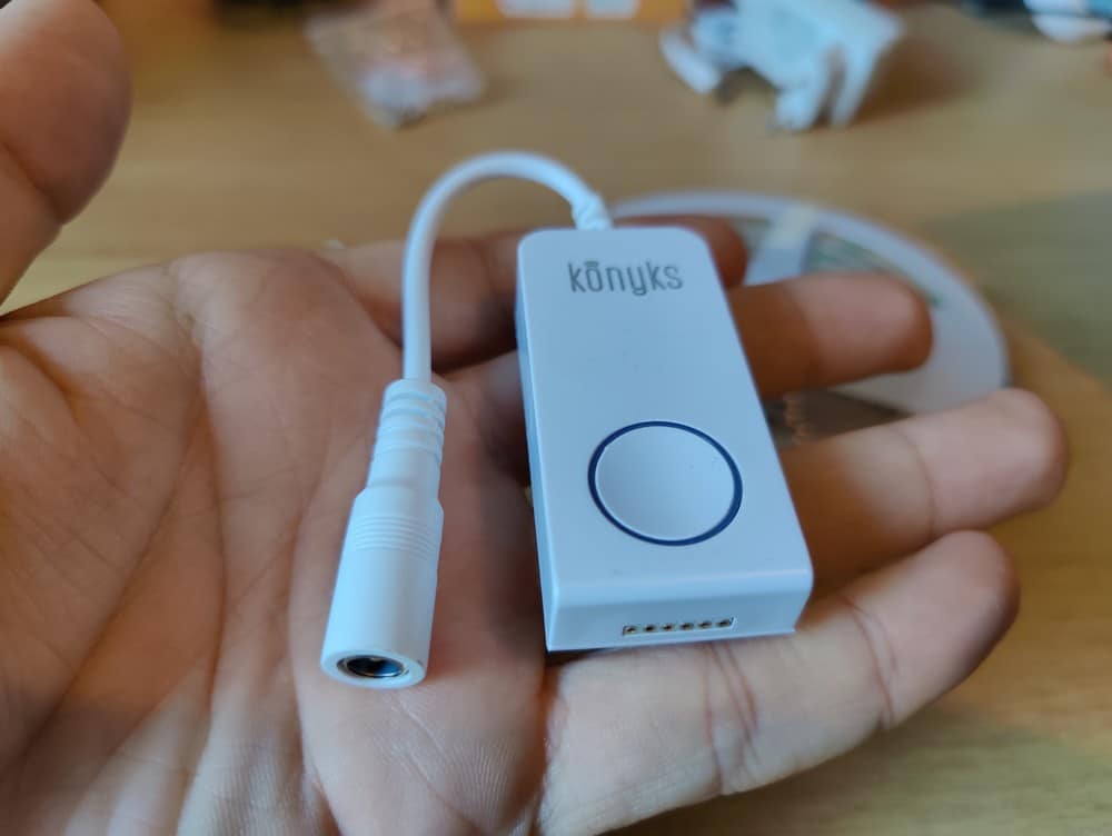 L'adaptateur Wi-Fi (troisième photo ci-dessus) devra être connecté sur le bloc secteur d'une part, et sur le bandeau LED d'autre part. Tout en sachant que Konyks ne vend pas d'extension pour le moment. D'après Konyks, il serait possible d'ajouter une extension standard (largeur 12mm) que l'on peut trouver sur le marché, mais je n'ai pas fait l'essai.