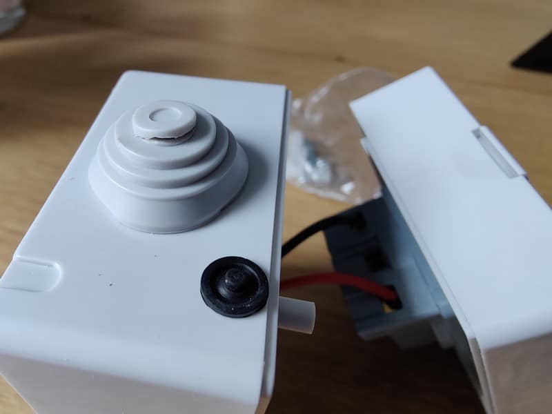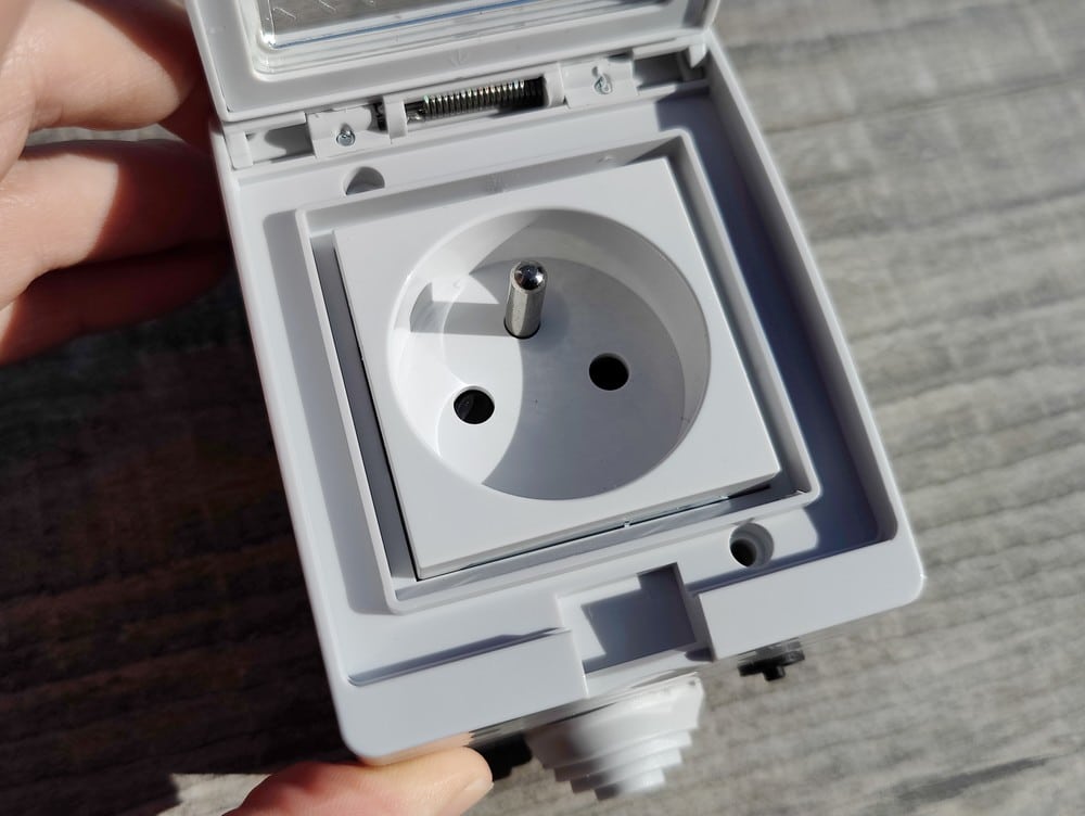 À première vue, la prise semble assez imposante, mais cela ne me choc pas du tout puisqu'elle est destinée à être installée en extérieur. D'autant plus qu'elle est grise, ce qui lui permet d'être passe-partout. La qualité de fabrication est bonne donc j'ai envie de dire que c'est rassurant pour la suite !
