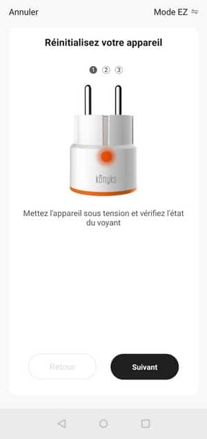 L'ajout dans l'application Konyks (Android / iOS) s'effectue facilement et comme les autres appareils Konyks. Si ce n'est que c'est encore plus simple et quasiment automatique avec les appareils dotés du Bluetooth comme la prise Konyks Priska Max Easy. Ici, ce n'est pas le cas, mais l'assistant est simple et efficace.