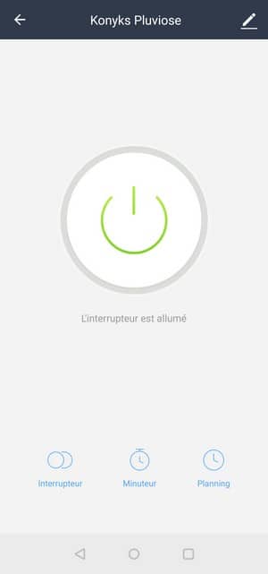 Lorsque la prise connectée est ajoutée, on la retrouve au sein du tableau de bord avec la possibilité de l'allumer et l'éteindre sans même rentrer dans les paramètres de l'appareil.