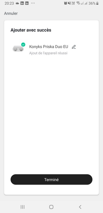 Cette prise connectée s'initialise à l'aide de l'application Konyks, à l'identique des autres appareils de la marque. Quelques secondes suffisent pour associer la prise connectée à son réseau domestique : il suffit d'ajouter l'appareil, de choisir le type, de confirmer que l'appareil clignote correctement, d'indiquer les infos sur le réseau sans-fil et de lancer la recherche !