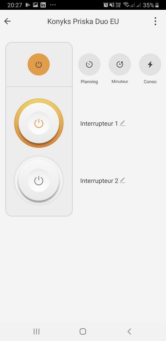 Ce qui est intéressant, c'est que toutes les fonctionnalités se gèrent en double. Vous pouvez allumer les prises indépendamment, mais aussi gérer le planning et la minuterie de façon totalement indépendante pour les deux prises. Il n'y a que le suivi de la consommation qui est commun.