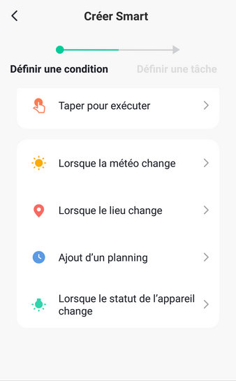 Il est également possible de passer par les fonctionnalités d’automatisations. Ces commandes se font en définissant des conditions dont voici un aperçu.