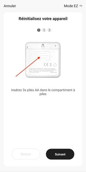 À partir de l'application Konyks, l'initialisation est assez simple. Comme d'habitude, l'application est là pour nous guider pas à pas et dans le cas du Termo, c'est le bouton sur le dessus de l'appareil qui permet de le réinitialiser. Quelques étapes plus tard, le détecteur est connecté à votre compte et au Wi-Fi de votre domicile.