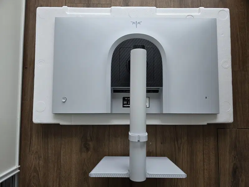 Sur les photos ci-dessous, découvrez l'écran une fois assemblé avec son pied. Cet écran est blanc et c'est la seule option proposée par KTC pour ce modèle.