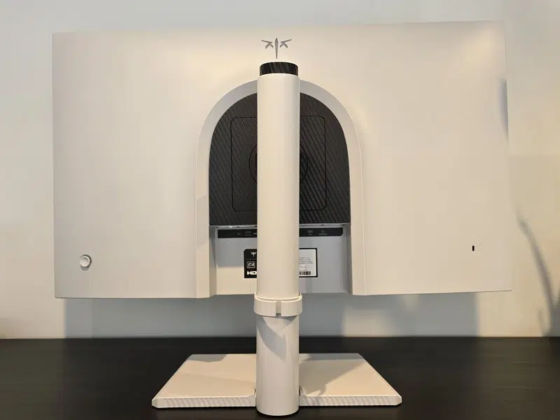 L'ensemble est entièrement blanc, à l'exception de l'avant du pied qui est grise. Le pied en métal aspire confiance et devrait tenir dans le temps, même si le plastique utilisé pour la coque de l'écran fait un peu plus cheap. Les finitions sont correctes et malgré tout, le matériel est en parfait état.