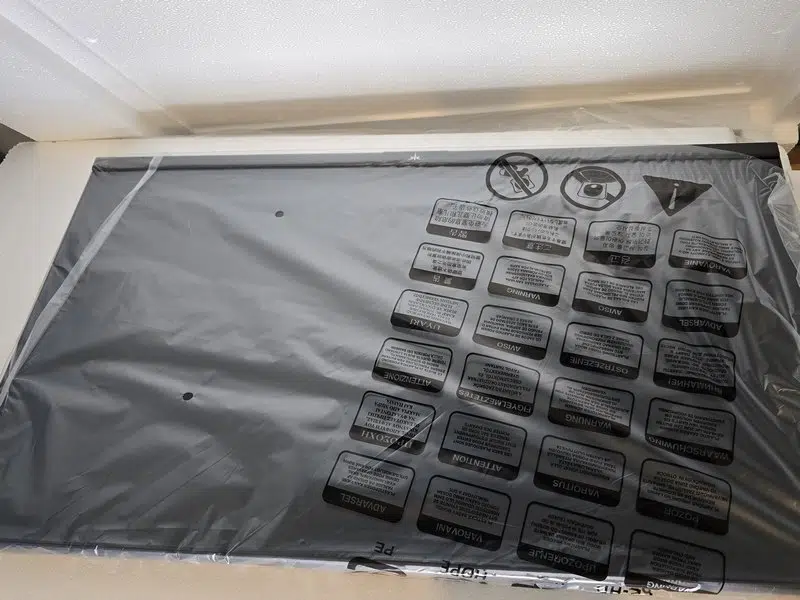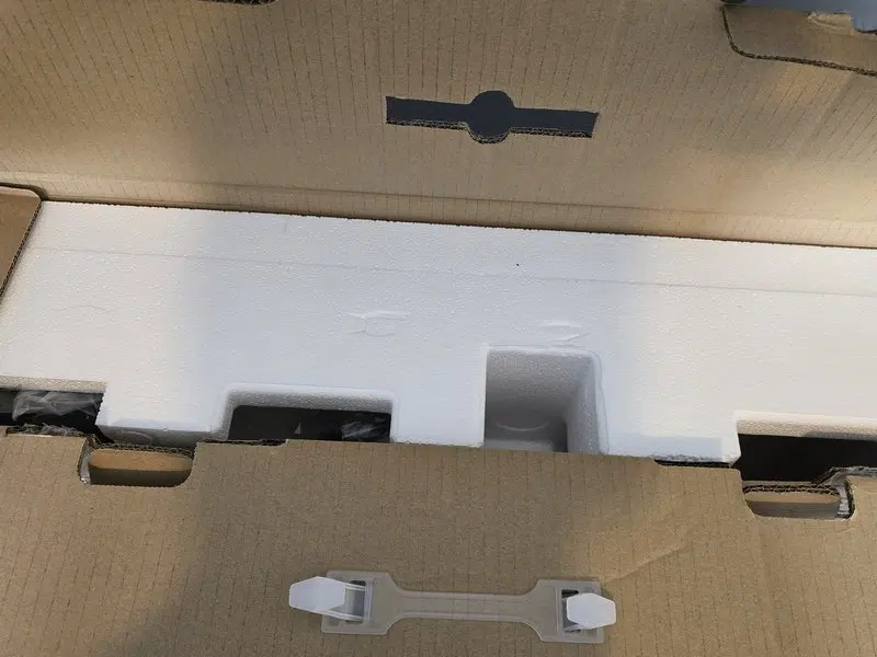 Sobriété, c'est l'adjectif qui décrit certainement le mieux le package dans lequel se situe cet écran KTC. La boite en carton brut contient tout de même un marquage propre à la marque KTC. À l'intérieur, l'écran est en parfait état, mais ce n'est pas une surprise puisqu'il est parfaitement protégé par une boite en polystyrène, de bonne épaisseur. Finalement, chaque élément est à sa place et à l'abri des chocs, c'est le principal.