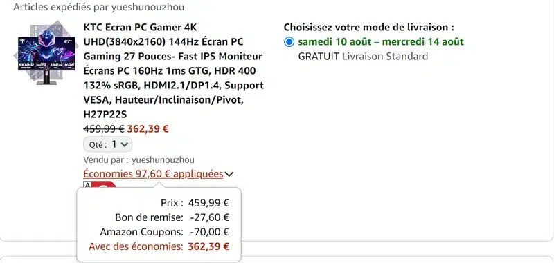 À l'occasion de la sortie de ce test, vous pouvez profiter d'une remise de 6% avec le code promo "NNECTH27" utilisable chez Amazon.fr. En ce moment, il y a aussi un coupon activable sur la page Amazon du produit. Ainsi, le prix de cet écran passe de 459,99 € à 362,39 € soit près de 100 euros de remise !