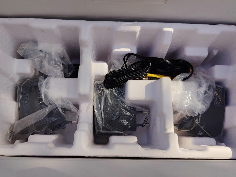 À l'intérieur de la boîte se situent les trois boîtiers Mercusys, correctement protégés, ainsi que trois blocs d'alimentation, un guide d'installation rapide et un câble Ethernet jaune (Mercusys aurait pu mettre un câble rouge ou noir pour coller avec la charte graphique de la marque). Un seul câble Ethernet, c'est le strict minimum pour relier la solution à Internet. Pour exploiter les autres ports Ethernet, il faudra vous procurer d'autres câbles Ethernet.