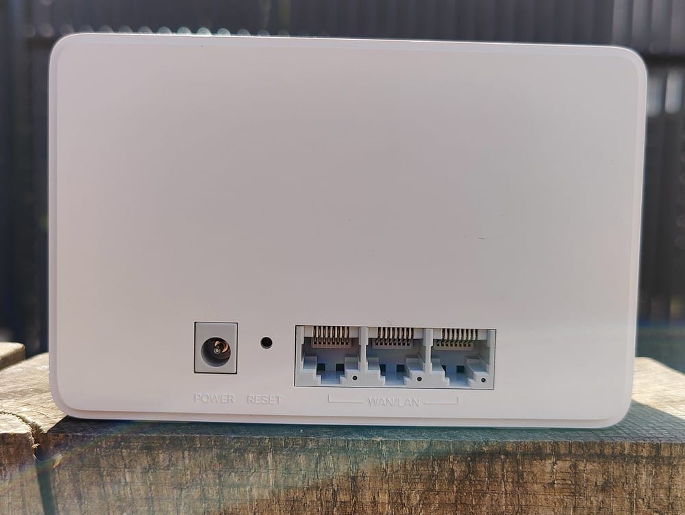 Pour la mise en route, ne recherchez pas le boîtier principal, car il n'y en a pas : prenez n'importe quel boîtier, et il deviendra le boîtier principal. Comme le montre la photo ci-dessous, chaque borne Mercusys est équipée de 3 ports RJ45 pouvant aussi bien servir pour le LAN (réseau local) que pour le WAN (Internet). C'est bien, car cela simplifie la mise en route, car chez beaucoup de modèles concurrents, il y a un boîtier principal équipé d'un port WAN et d'autres boîtiers uniquement pour le LAN.