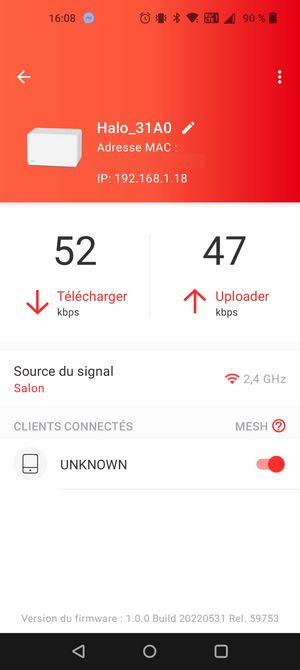 À la suite de ces quelques étapes, le premier boîtier Halo est en place et opérationnel ! En reprenant le même nom et le même mot de passe que le réseau WiFi de votre Box, les appareils se reconnectent automatiquement. D'ailleurs, l'application affiche une liste des appareils connectés, avec un nom et la consommation en matière de bande passante. Afin d'organiser votre réseau, vous pouvez renommer vos appareils.