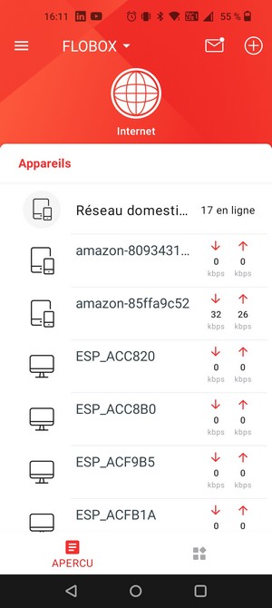 À la suite de ces quelques étapes, le premier boîtier Halo est en place et opérationnel ! En reprenant le même nom et le même mot de passe que le réseau WiFi de votre Box, les appareils se reconnectent automatiquement. D'ailleurs, l'application affiche une liste des appareils connectés, avec un nom et la consommation en matière de bande passante. Afin d'organiser votre réseau, vous pouvez renommer vos appareils.