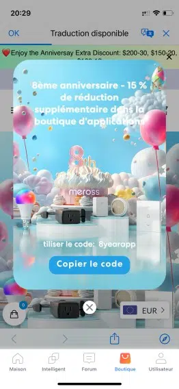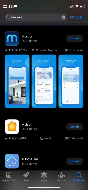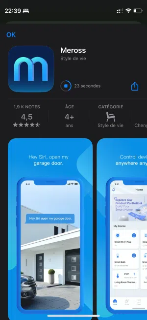 Rendez-vous dans le magasin d’applications de l’OS de votre smartphone puis recherchez MEROSS ou scanner directement le QR code fourni sur la notice pour télécharger l’application.