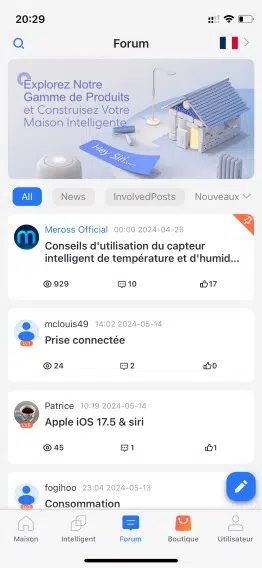 - La partie « forum » avec différentes catégories : All, News, InvolvedPost, Event, ….