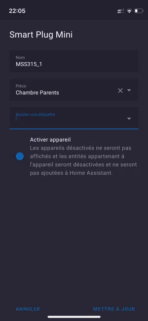 Une fois l’intégration effectuée, vous bénéficiez de la fonction principale. Malheureusement, nous n’avons pas la partie consommation d’énergie. Vous pouvez utiliser la prise dans les automatismes.