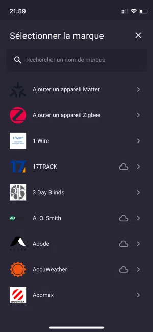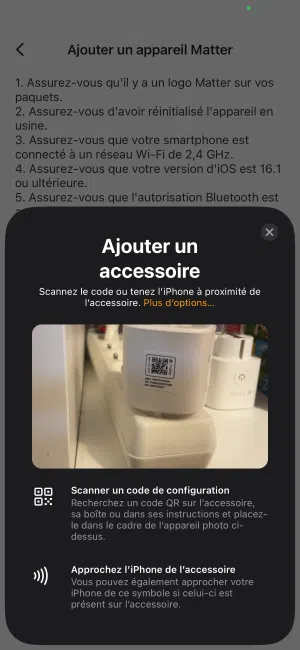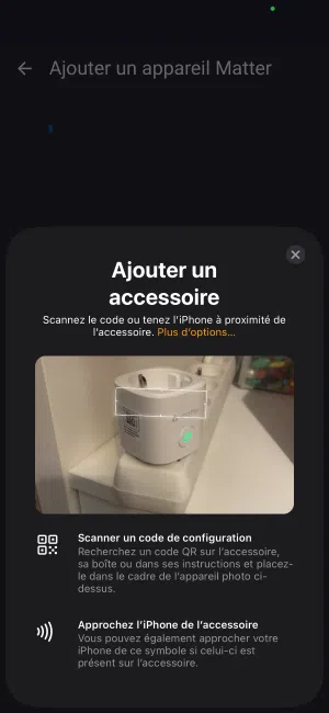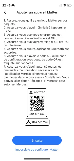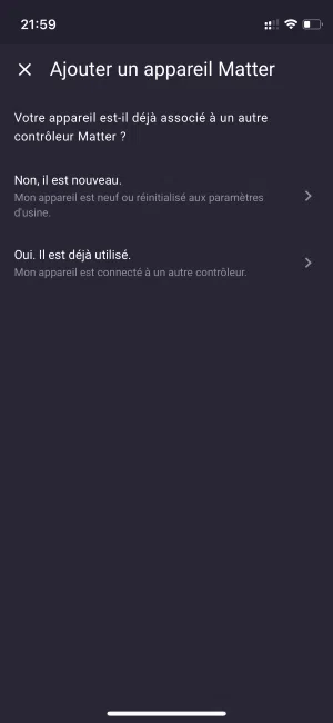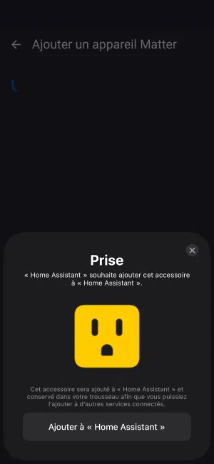 Avec HomeAssistant et Matter, l’intégration doit se faire automatiquement sur smartphone (ceci est nécessaire avec Matter).