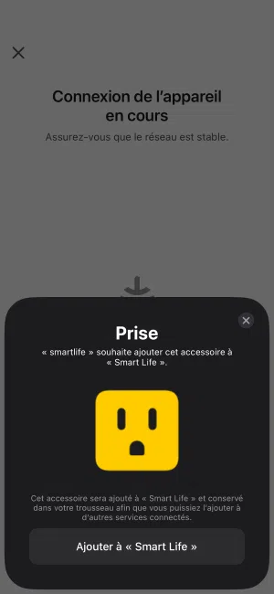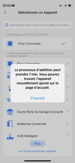 Cliquer sur la prise trouvée afin de l’ajouter à l’application. Cela peut prendre plusieurs minutes.
