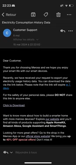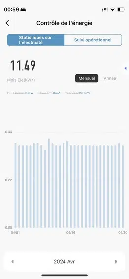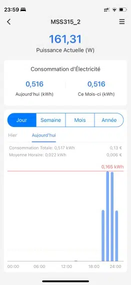 La partie « Consommation d’énergie » est très intéressante et complète avec les graphiques et le calcul du montant, dommage que ce ne soit que sur l’application officielle. Ceci changera peut-être avec les mises à jour du protocole Matter.