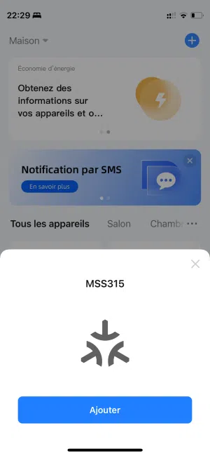 L’intégration de la prise MSS315 à partir de l’application peut être faite de 2 deux manières possibles. La première en détection automatique avec le Bluetooth, celle-ci est disponible dès que l’on branche pour la première fois la prise, elle est automatiquement mise en mode appairage et est détectée directement par l’application.