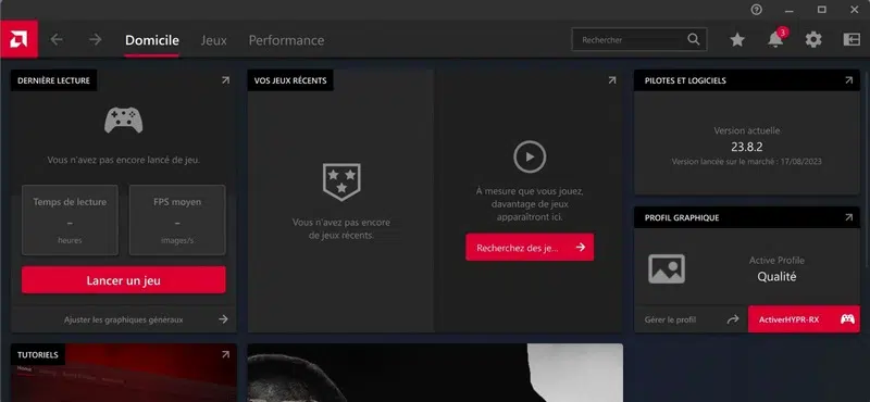 L'application "AMD Software: Adrenalin Edition" est préinstallée sur l'ordinateur. Au-delà de faciliter le suivi des mises à jour des pilotes, elle est là pour optimiser la configuration des options graphiques lorsque le mini PC est utilisé pour jouer.