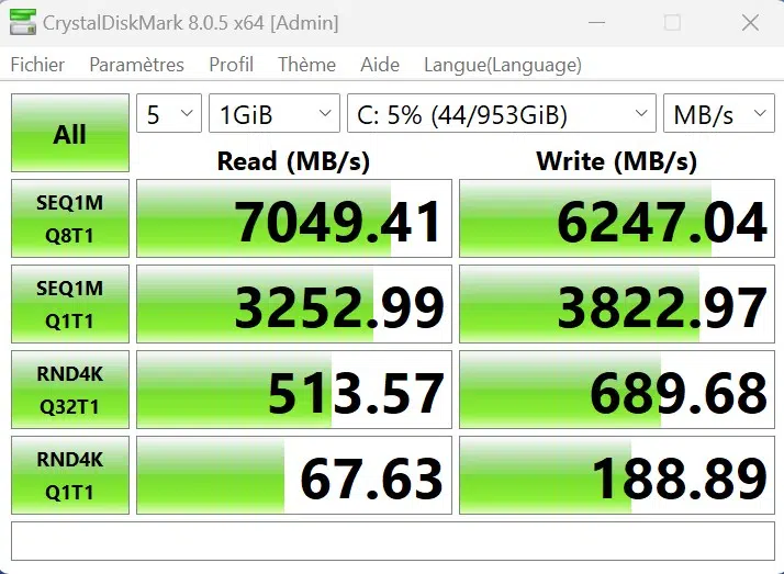 Nous allons évoquer les performances de ce mini PC ! Commençons par un benchmark du disque SSD NVMe Phison.