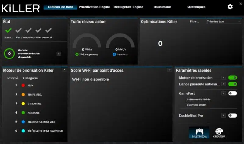 Comme je l'évoquais précédemment, cette carte Wi-Fi est accompagnée par l'application Intel Killer Intelligence Center. Le centre de contrôle Intel Killer sert à examiner vos applications afin de prioriser les applications critiques, au niveau de la bande passante du réseau.