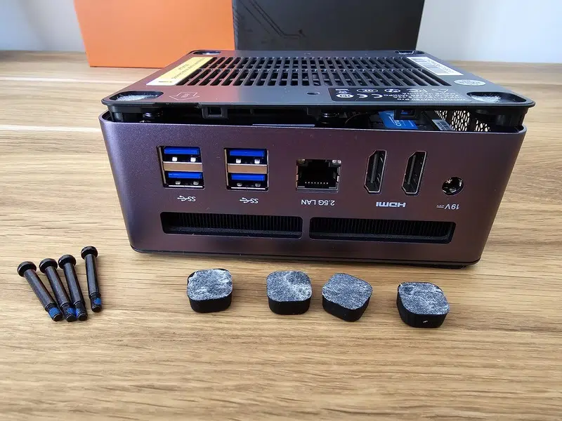 Pour ouvrir le boitier, il est nécessaire de décoller les 4 patins pour accéder au 4 vis permettant de verrouiller le boitier. Je suis parvenu à décoller les patins et à les recoller. Si cette opération est répétée plusieurs fois, il y a des chances que l'adhésif soit moins efficace. C'est surement pour cette raison que Minisforum a intégré 2 patins de rechange.