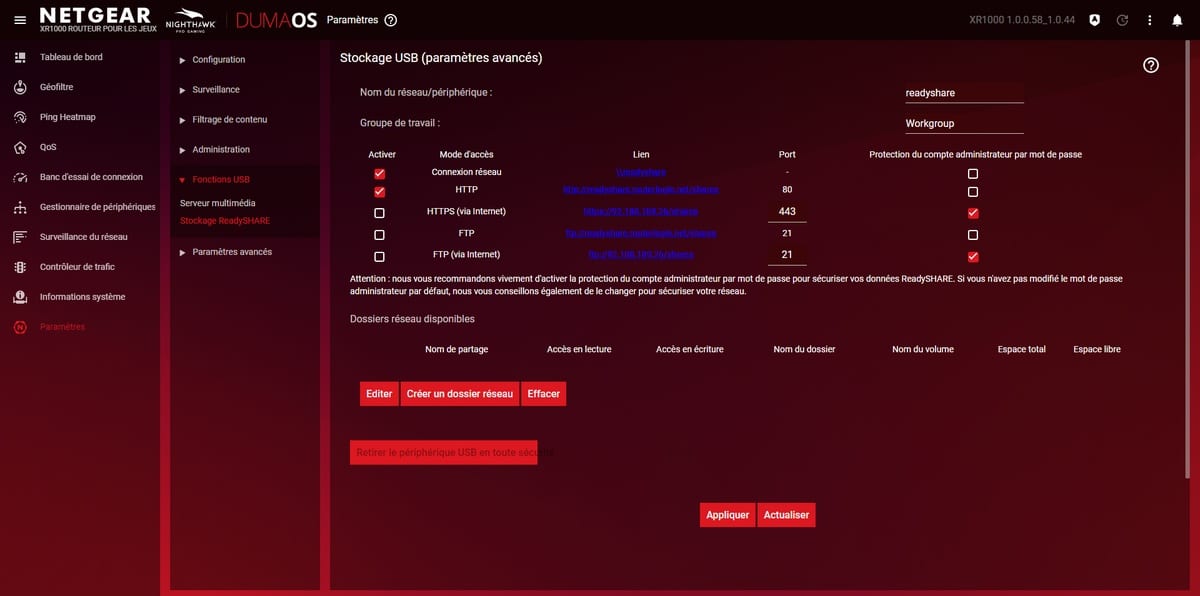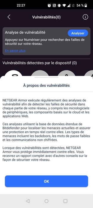 - Scanner des vulnérabilités via Netgear Armor (service payant qui s'appuie sur Bitdefender)