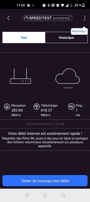 Quelques mots sur les performances, même si ce n'est jamais évident, car les performances ne dépendent pas que du routeur. La couverture WiFi offerte par le routeur Netgear Nighthawk est bonne, et elle permet même aux appareils situés à environ 10-12 mètres d'avoir une connexion sans-fil stable, avec un débit suffisant. Néanmoins, la couverture montrera forcément ces limites et comme il ne s'agit pas d'un système compatible Wifi Mesh, ce ne sera pas évident d'étendre le signal !