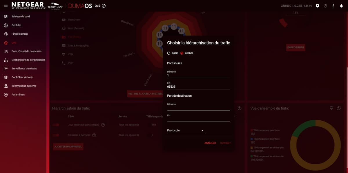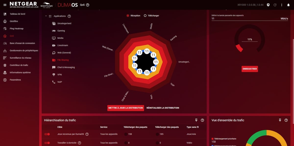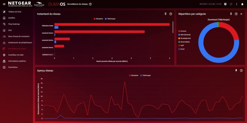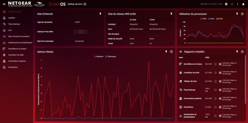 Découvrons le système DumaOS 3.0 de ce routeur NETGEAR. Comme je le disais en introduction, il intègre des fonctionnalités plutôt cool et certaines sont clairement destinées aux gamers !