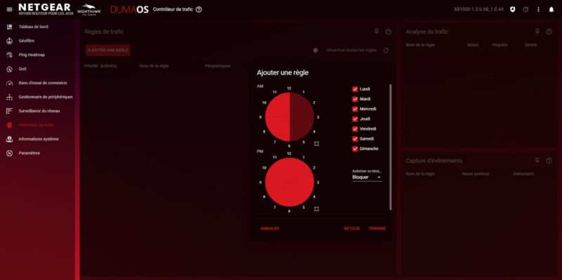 Si vous estimez qu'un appareil ne doit pas se connecter pendant la nuit (la tablette des enfants, par exemple ;-)), vous pouvez créer une règle d'accès au sein du routeur pour bloquer l'accès à ce périphérique selon un planning personnalisé. La nuit, on dort et on réserve la bande passante pour les sauvegardes sur le NAS de papa. 🙂