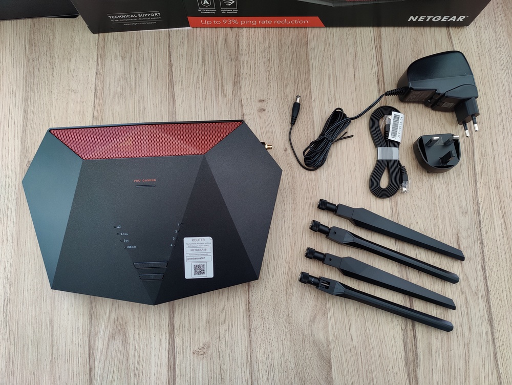 Il faut l'avouer : il a une belle gueule ce routeur ! J'approuve totalement son design et le fait qu'il soit dans l'esprit "gaming". Avec ses antennes, il a presque des allures de vaisseaux, même si sur cet aspect il est battu par le modèle NETGEAR RAX120. Avec son boitier taillé en diamant et de couleur noire avec des éléments rouges, le design de ce routeur me fait penser à certains NAS ASUSTOR orienté gaming. Je suis sûr qu'ils iraient bien ensemble. 😉