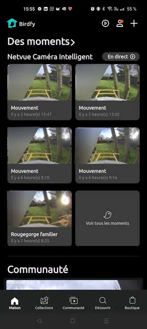 Au-delà de l'application Netvue, qui prend en charge toutes les caméras de la marque, il y a une seconde application nommée Birdfy, qui comme son nom l'indique, est dédiée à l'univers Birdfy. J'ai mis du temps à la découvrir, car je suis partie directement sur l'application Netvue, en ignorant celle-ci. Pourtant, elle est beaucoup plus cool pour les propriétaires de caméras Birdfy ! Plusieurs raisons à cela :